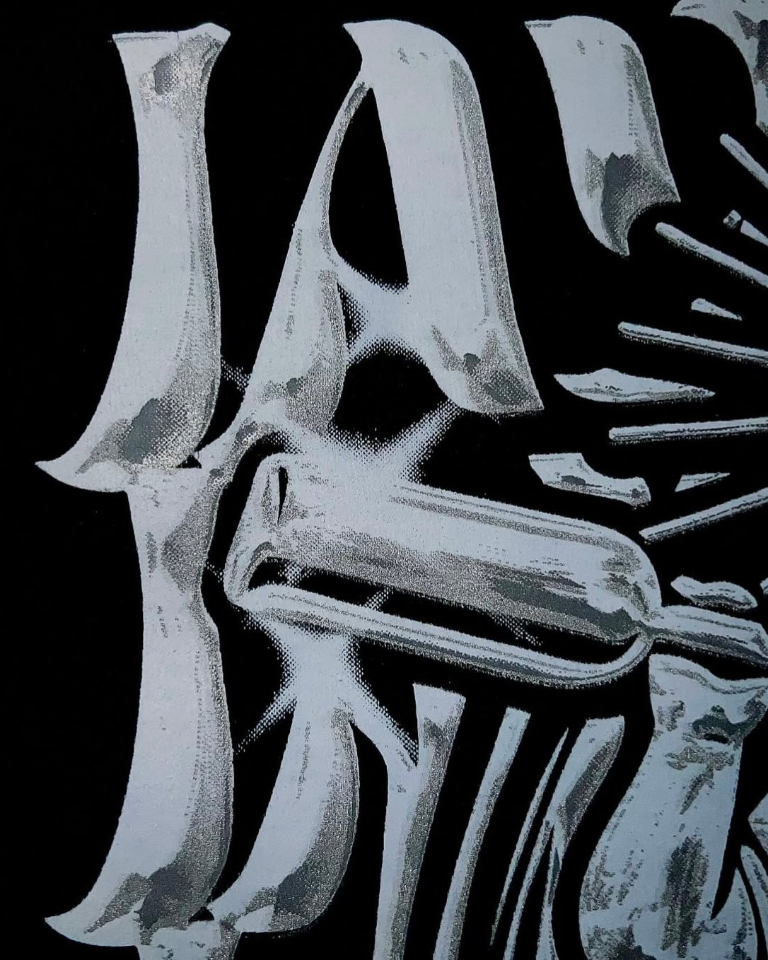 Camiseta con diseño de Ángel Cromo sobre tipografía distorsionada aplicado en serigrafia espalda y frente.